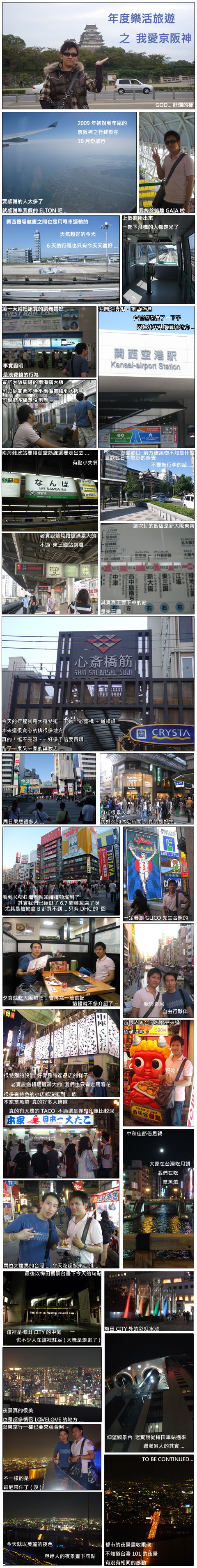 規劃了好久的京阪神 本來還因為H1N1改為再戰東京 結果還是讓我們十月份殺去關西當敗家男了 遊記寫的爛,真的是非戰之罪啊....